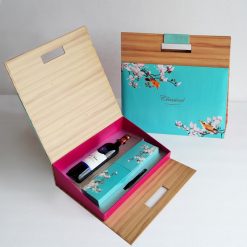- Trang trí: Hộp bánh trung thu kèm rượu mã C1-2001 là sự kết hợp của hoa anh đào tinh tế, kiểu dáng quai xách rất trang trọng và lịch thiệp.